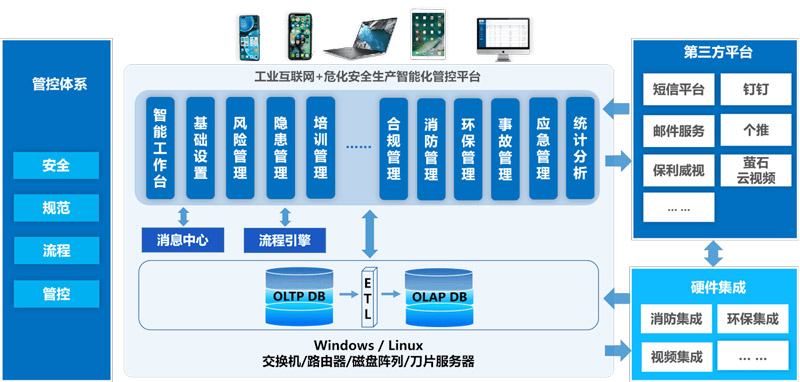 10. IoT物聯(lián)網(wǎng)集成:物聯(lián)網(wǎng)遠(yuǎn)程監(jiān)測(cè)系統(tǒng)通過集成視頻安防監(jiān)控、消防報(bào)警遠(yuǎn)程監(jiān)控、消防水系統(tǒng)監(jiān)測(cè)、室外消火栓狀態(tài)監(jiān)測(cè)、消防設(shè)備狀態(tài)監(jiān)測(cè)、物聯(lián)網(wǎng)無線獨(dú)立式煙感監(jiān)測(cè)、電氣火災(zāi)監(jiān)測(cè)等軟硬件平臺(tái)設(shè)備,為企業(yè)提供不同監(jiān)測(cè)設(shè)備的狀態(tài)信息數(shù)據(jù)統(tǒng)計(jì)分析及實(shí)時(shí)推送服務(wù),滿足企業(yè)精細(xì)化安全生產(chǎn)管理需求。