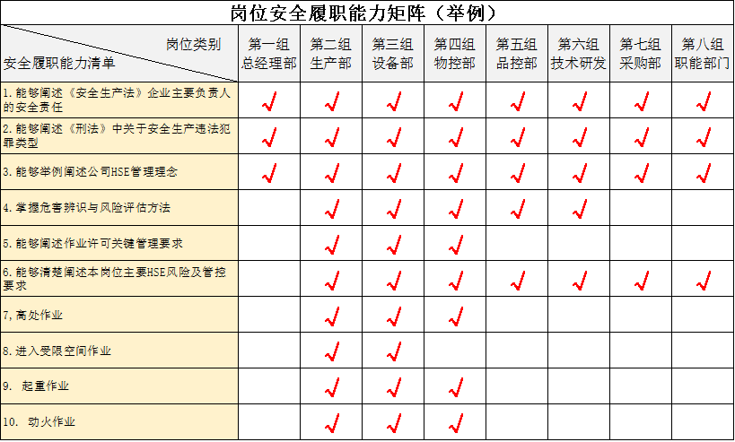 | 編制崗位安全履職能力矩陣 | |||||||